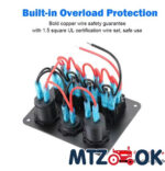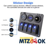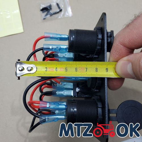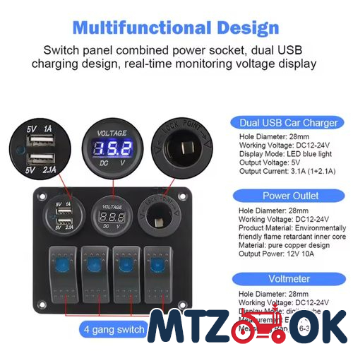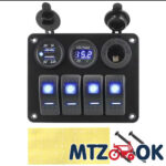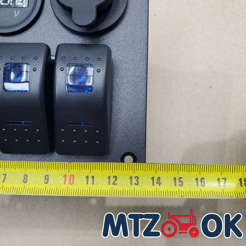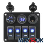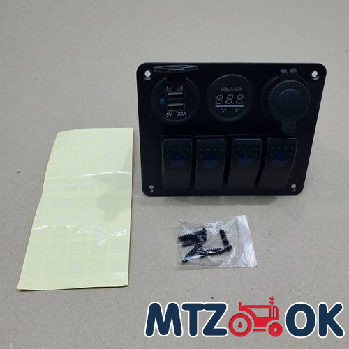 Блок переключателей (4 кнопки)+2х портовый USB+вольтметр, автоматич. выключатель (синяя подсветка) 5016