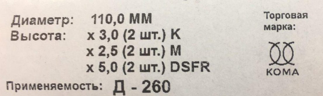 Кільця поршневі Д-260 (3к.) к-т 1шт. (Бузулук, Чехія) 260-1004060