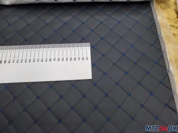 Кожзам чорний (синя стібка) на синтепоні 1.4х1м