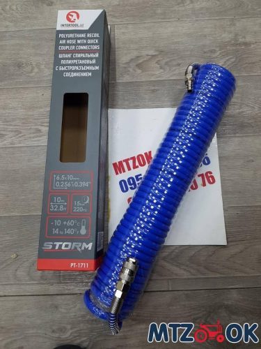 Шланг повітряний(поліуретан)спіральний пневмоінструмент 6,5х10мм 10м
